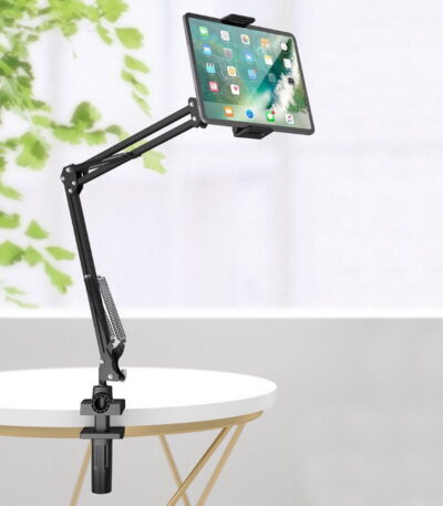 This is a terrific good value universal stand for your tablet or phone, featuring a stable long arm with a flexible head area that connects to a rotating tablet holder...