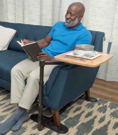 Features: Swivel-Tray - Oversized laptop/TV bamboo swivel-tray swings out of the way when not in use. Adaptable - Adjusts in length to fit either side of your couch/chair. Super-Grip Rubber...