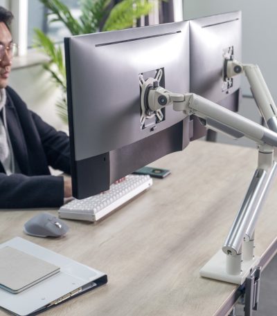 Explore our range of dual monitor arms designed to improve ergonomic comfort and increase workspace efficiency. Perfect for both home offices and professional settings, these monitor arms allow for flexible positioning, reducing neck and eye strain. Compatible with most screen sizes, they help declutter your desk, promoting a streamlined and productive work environment. Adjust your screens effortlessly for optimal viewing angles and transform your workstation into an ergonomic haven. Ideal for multitaskers, our dual monitor arms support a healthier posture and workflow. Discover the benefits of a well-organised workspace today.