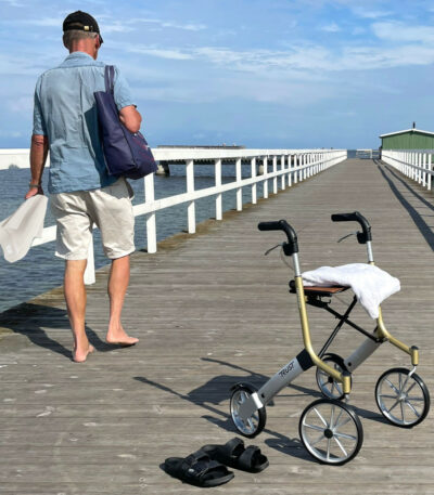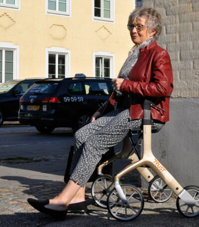 A terrific new rollator design from Swedish company Trust Care. The Let's Go Out rollator is light and elegant, both folded and unfolded. It has super X frame cross folding...