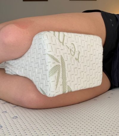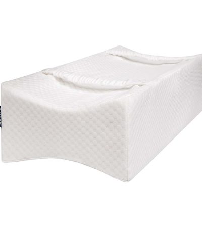 This knee pillow is longer than your normal knee spacer, so it’s long enough to cover from your knees to your ankles, with a strap so that it won’t slip...