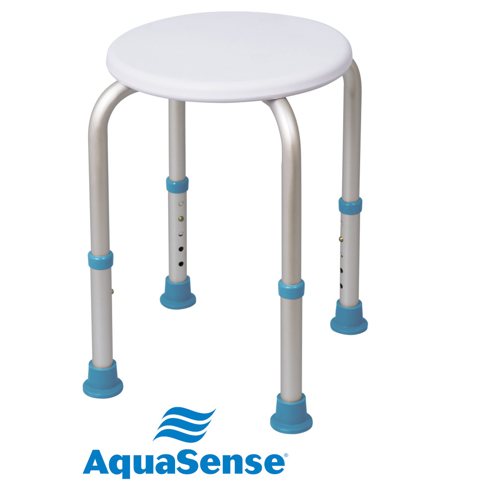Designed by market leader AquaSense, it's ideal for shower enclosures and narrow bathtubs, and is also height adjustable and made from lightweight aluminum tubing and blow-molded plastic. Features a textured surface and 4 slip resistant rubber safety tips.