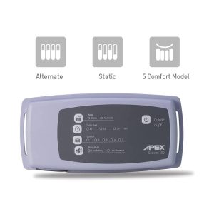- Pressure redistribution alternating system with static therapy mode to help with patient repositioning