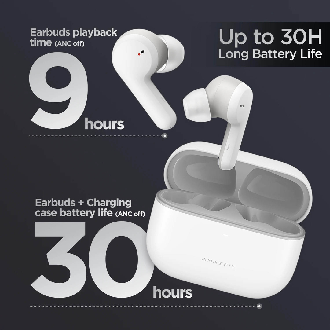 The brilliant Amazfit PowerBuds come with a PPG heart rate sensor to precisely monitor your heart rate and keep you informed of your workout status. Get voice notifications when your heart rate exceeds the pre-set warning level, and the unique magnetic split ear hook design improves the comfort and stability of the earphones. 8 hours of play time on a single charge, which when coupled with the magnetic charging case, allows for another 16 hours, makes a massive 24 hours of music on-the-go.