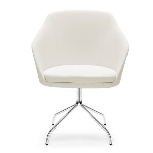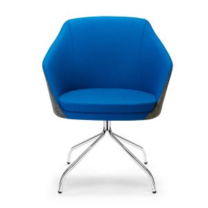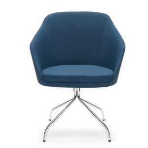 The chair is imported from Italy then custom made in Australia in a choice of fabrics and colours. Perfect for any hospitality setting, it can be used in office settings, healthcare, retail or any hospitality or cafe environment. This particular model of the Annette features polished chrome legs, but with a swivel mechanism.
