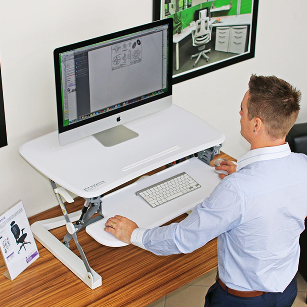 A terrific new height adjustable worktable that sits on your existing desk.