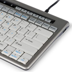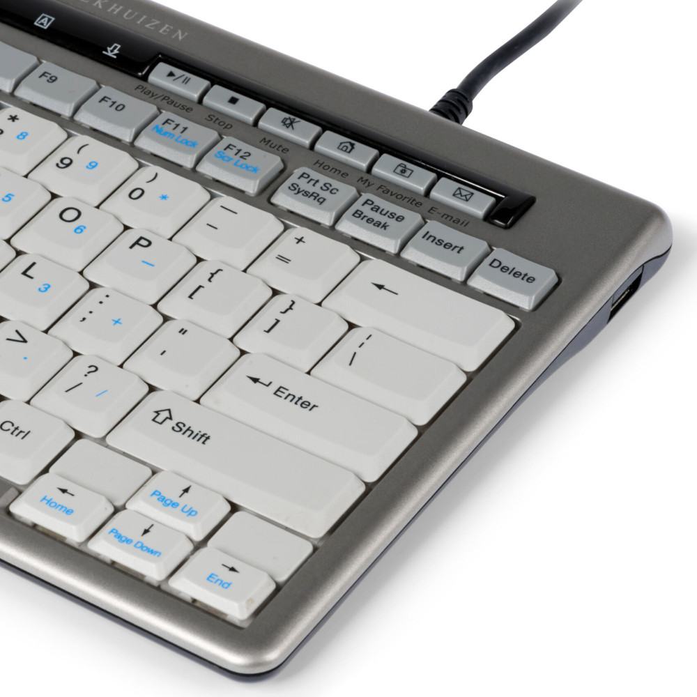 The BakkerElkhuizen S-Board 840 compact keyboard has been designed to provide a compact yet functional typing experience. Despite its small size, it retains full-sized keys, and it includes an integrated numeric keypad, allowing you to input numbers conveniently without the need for a separate numeric keypad.