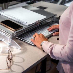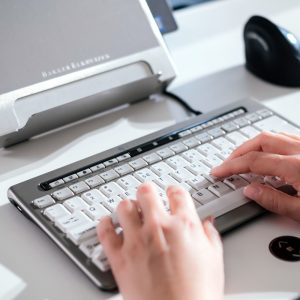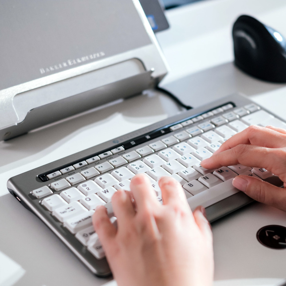 Having a compact keyboard minimises the distance you need to reach between the keyboard and mouse, resulting in less strain on your forearms and shoulders. Reducing overreaching encourages a more neutral wrist and forearm position and overall a more comfortableworking posture.