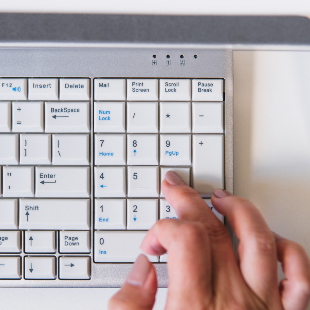 The numerical keypad is located on the right side of the keyboard and provides calculator-style efficiency for entering numbers, and the compact size and light weight allow it to fit perfectly in a laptop bag. .
