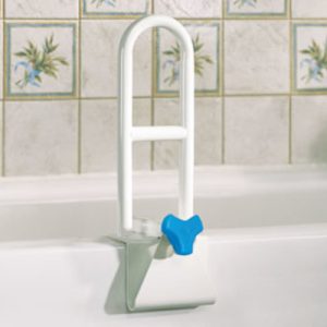 The super strong AquaSense® steel bath safety rail provides safety and comfort while getting in and out of the bathtub. Designed to fit a wide variety of tubs, it has two gripping surfaces, and installs easily and securely without tools, Made from rust-resistant steel, it has an easy to clean, white vinyl coated surface, and non-marring rubber pads on all contact points.