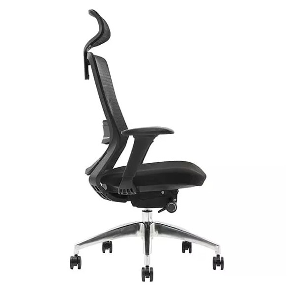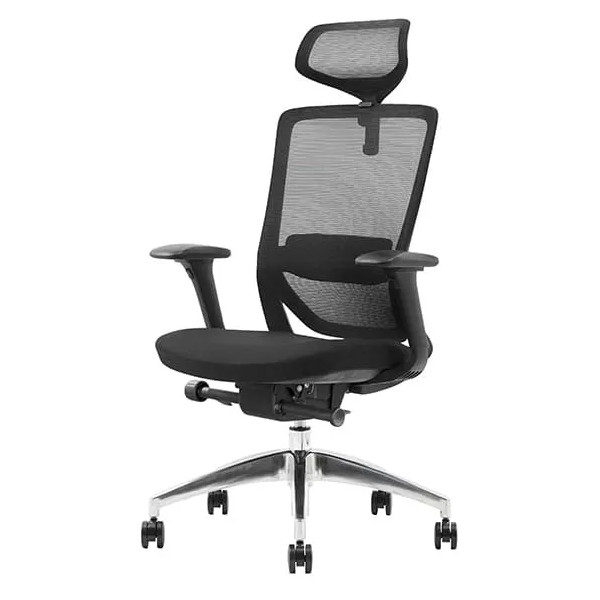 The Baxter executive mesh chair has a modern contemporary design, and the stylish mesh back chair comes with an integrated lumbar support. Featuring a polished aluminium star base you can choose with or without a headrest, and its a super synchro chair with 3 locking positions.