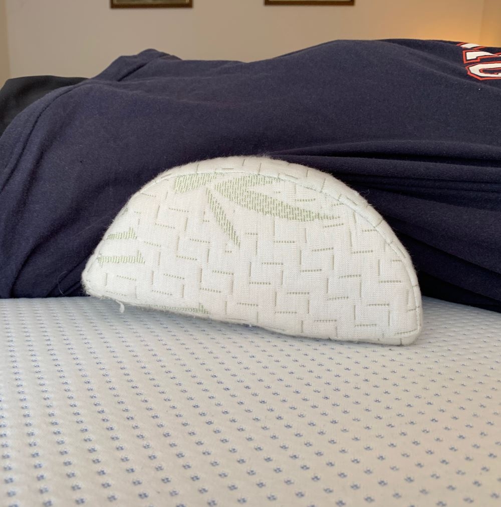 New to Bad Backs is this super long memory foam half roll with a soft terry cloth bamboo cover. It's the perfect bolster half moon, D shape pillow for side, back or stomach sleepers,