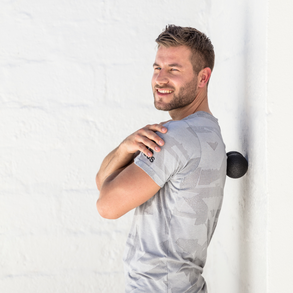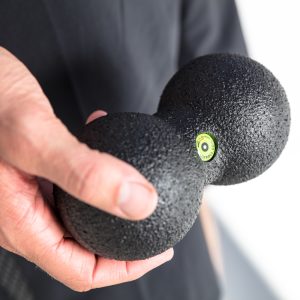 The Blackroll Duoball – made in Germany by – is a massage device ideal for massage of the back and neck musculature, and for fascial release. It can be used on the floor or on a wall. The gap between the two connected balls prevents you hurting your backbone, which makes the massage even more effective.