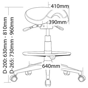 - Medium 200mm is 650-830mm seat height (floor to rear edge of seat)