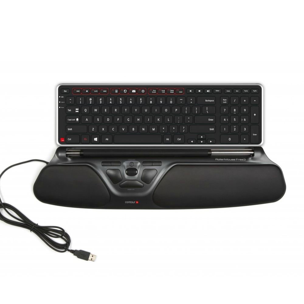 The new Contour Rollermouse Free3 is a low profile central pointing device specifically designed to be used with slimmer and more compact keyboards. It's beautiful sleek design is the perfect companion for supporting and maintaining a good ergonomic work position for prolonged periods. A great addition to the Bad Backs range of ergonomic accessories.
