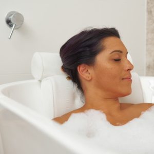 The bathtub is not the most comfy place, especially if you have a bad neck.