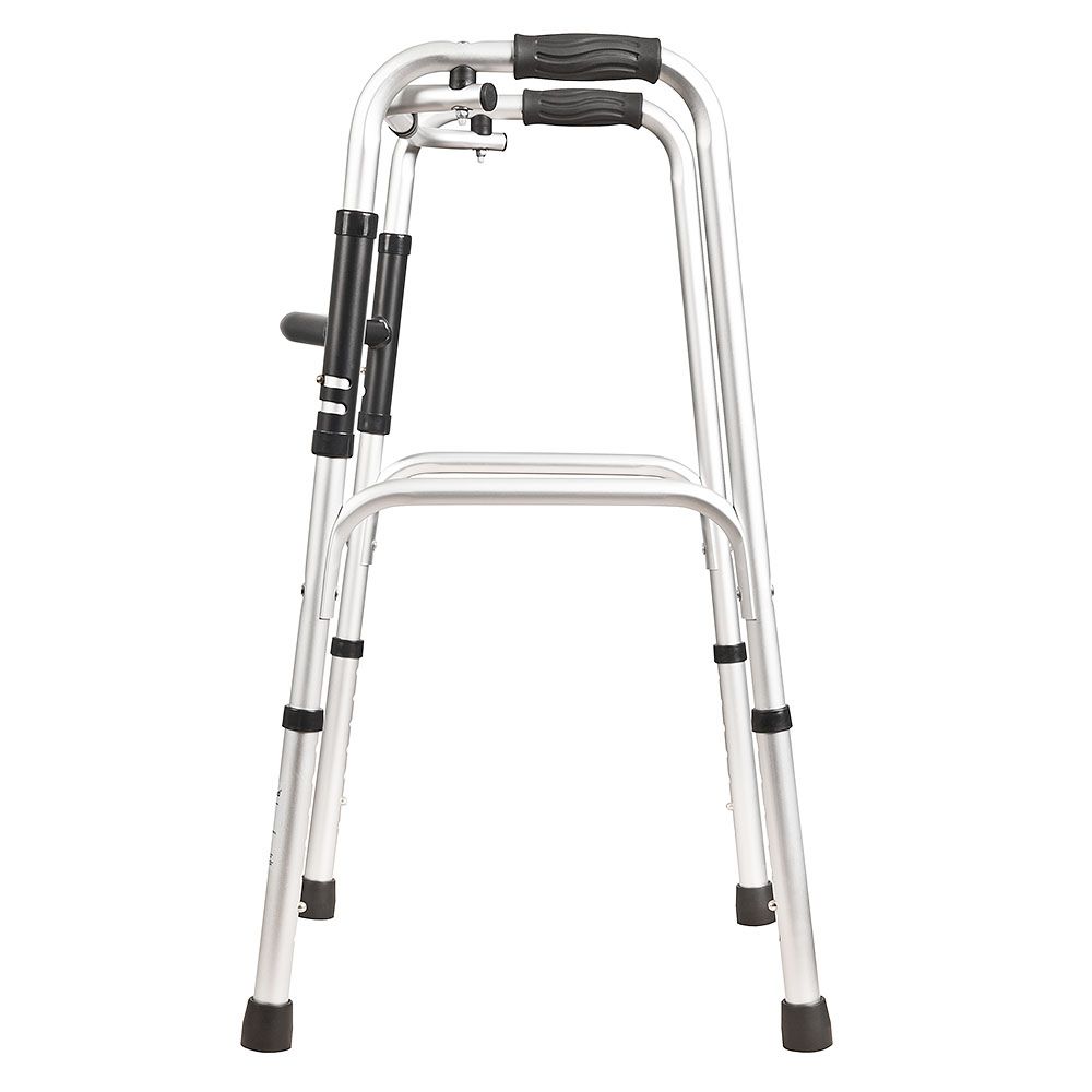 This is a lightweight aluminium zimmer style walking frame that is ideal for life on the go. It easily folds tool-free to a convenient size for transport and storage. The sturdy aluminium construction offers maximum stability and durability and the comfortable foam handles offer reliable support.