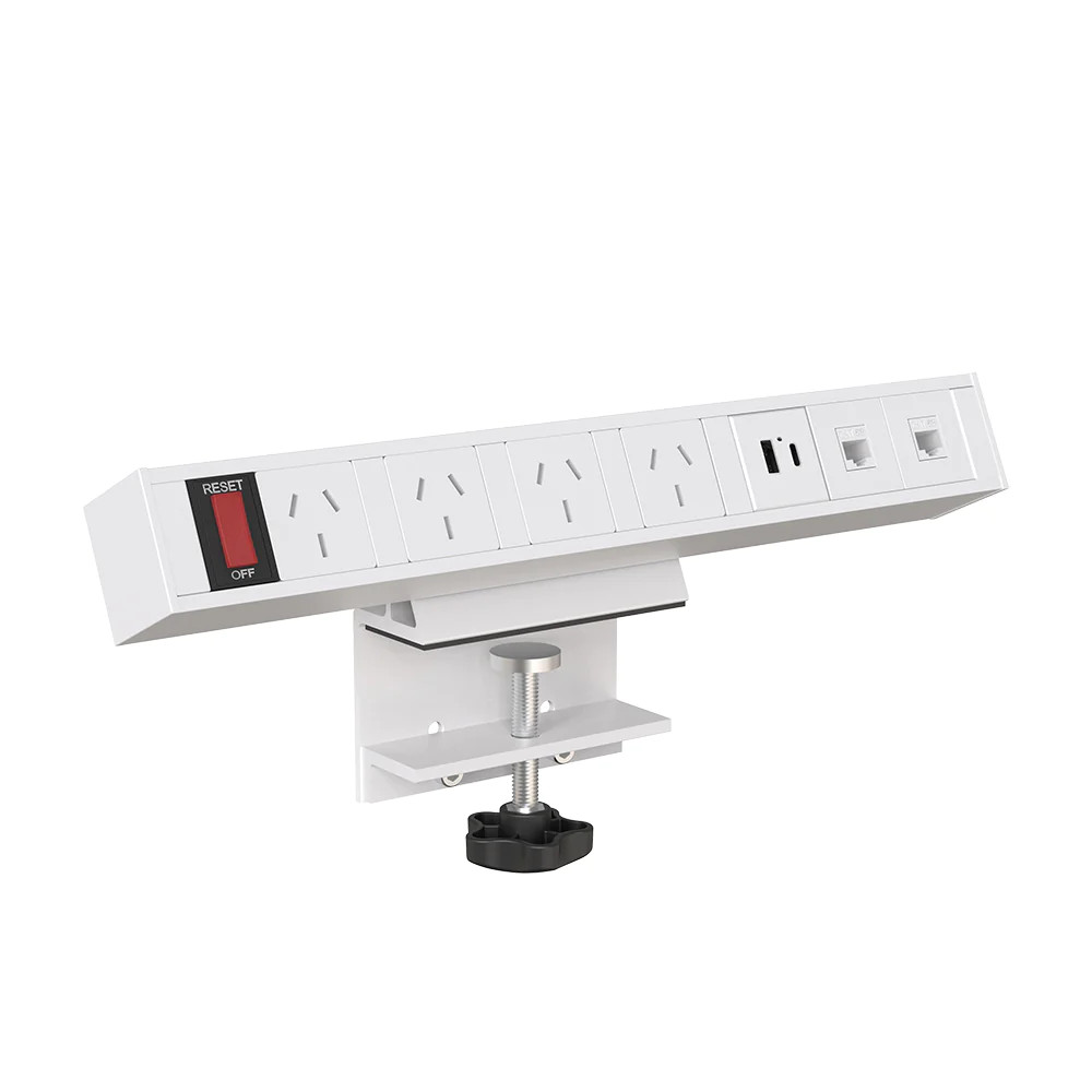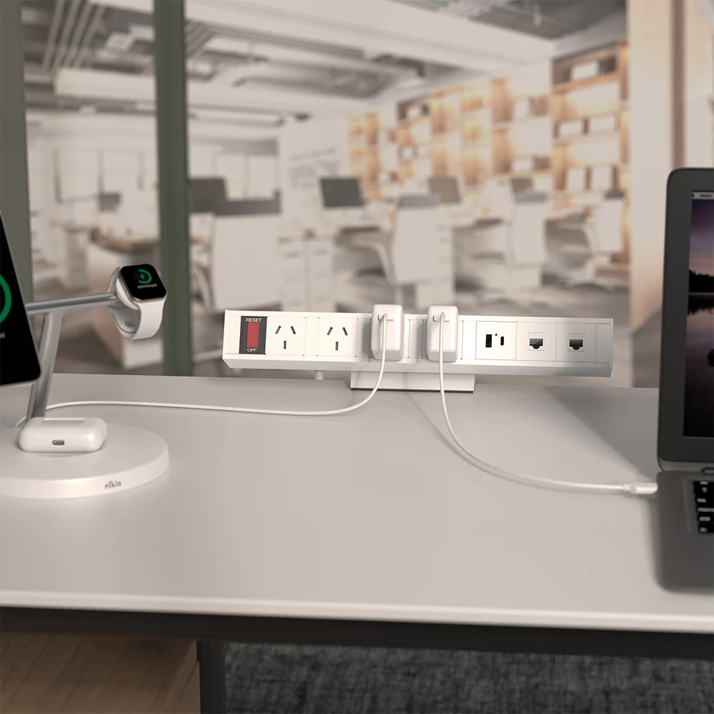 Ready to go right out of the box this super desktop power board presents a unique array of access points right at the desktop facing you as you work. You get simple and easy access to your power and cable management without clambering under the desk or chasing the cables to a wall outlet. Everything is under your control within arm’s reach.