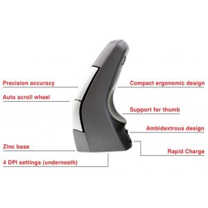 The new compact DXT Mouse has been designed for comfort and high accuracy. Most mice rely on some level of palm support, the smaller DXT mouse is gripped between the index finger and thumb resulting in more flexibility and accuracy of movement.The vertical design also promotes a more relaxed position, reducing stress through the wrist and forearm.