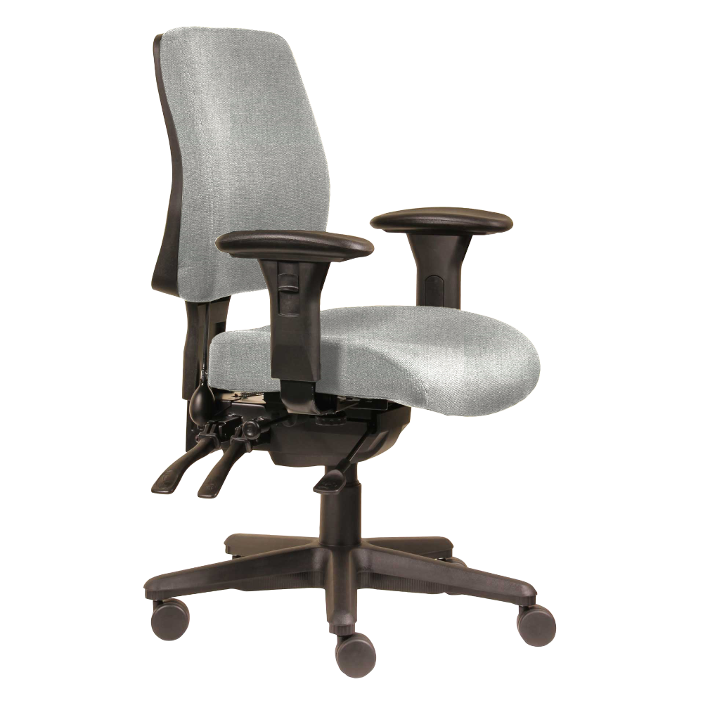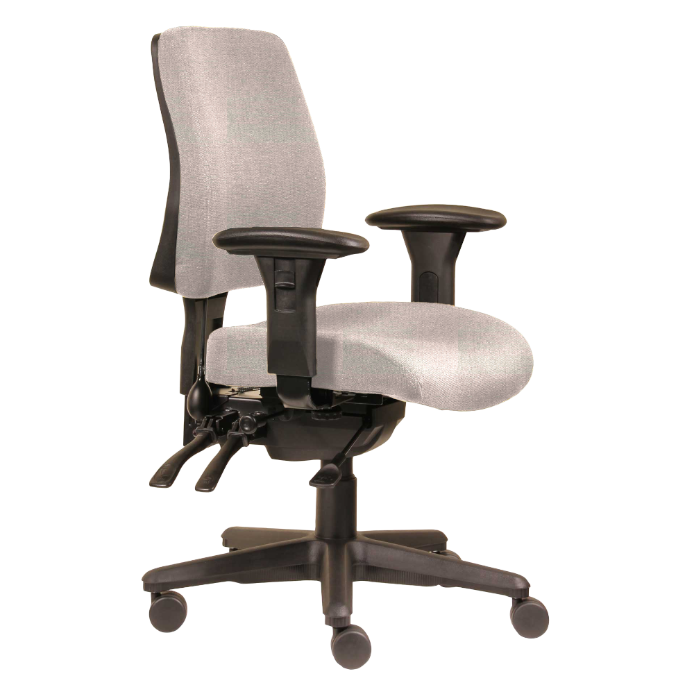 The ErgoSelect Spark chair range is a fantastic seating option that can be completely customised to you. Featuring a 3 lever ergonomic mechanism this medium back version comes with a lumbar pump, seat slider and ratchet back as standard, AFRDI approved with 4 seat sizes to choose from. The 10 year guarantee is assurance that your ErgoSelect chair is made to the highest quality.