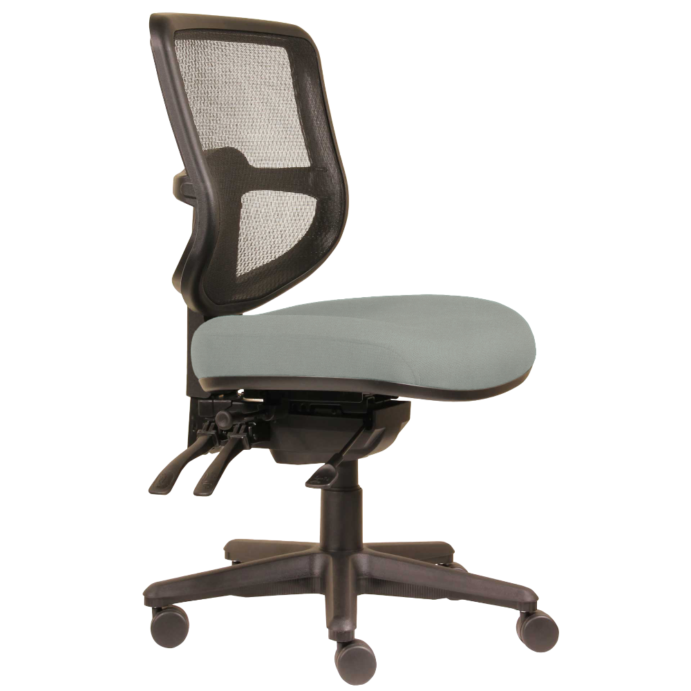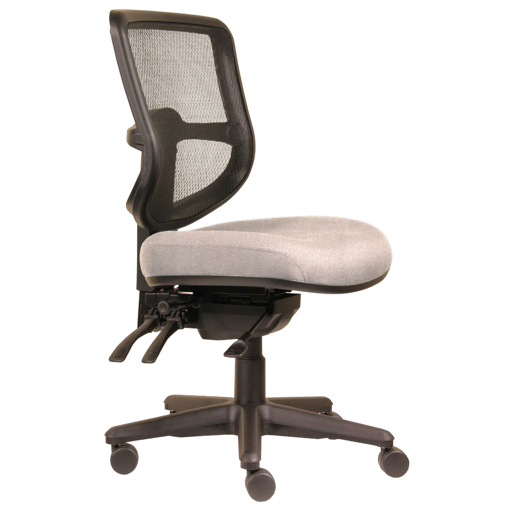 The ErgoSelect Swift mesh back chair range is a super seating option that can be completely customised to you. Featuring a 3 lever ergonomic mechanism this medium back version comes with a seat slider and ratchet back as standard, AFRDI approved with 4 seat sizes to choose from. The 10 year guarantee is assurance that your ErgoSelect chair is made to the highest quality.