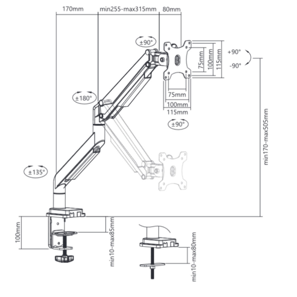 - Single monitor arm