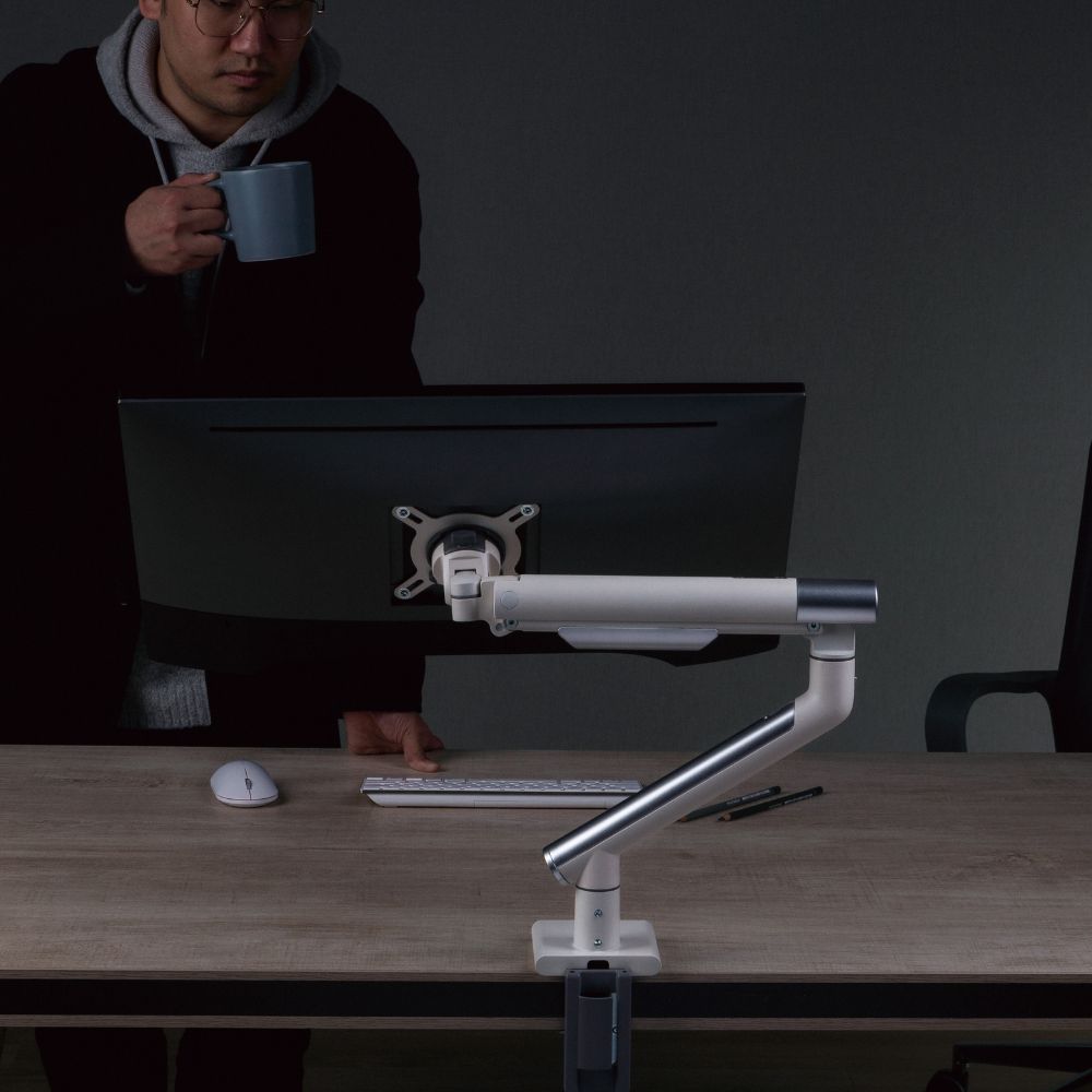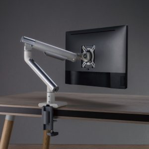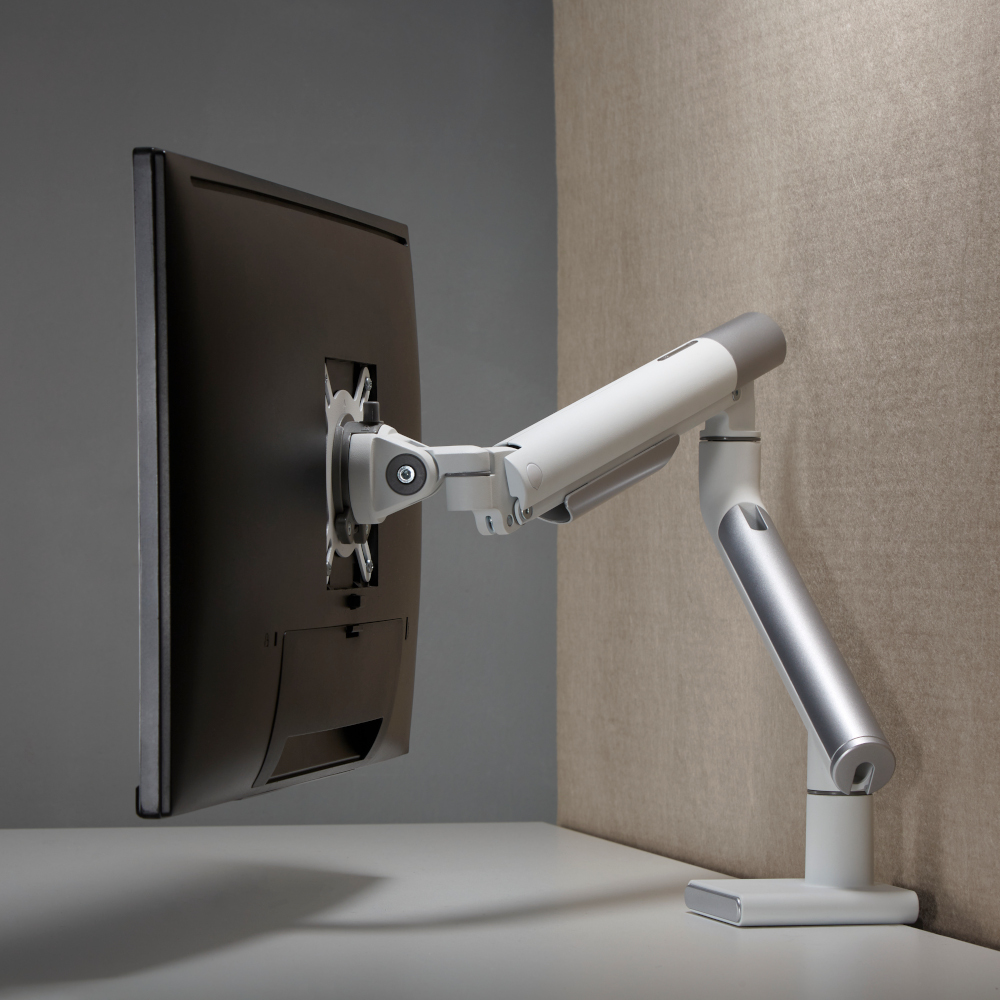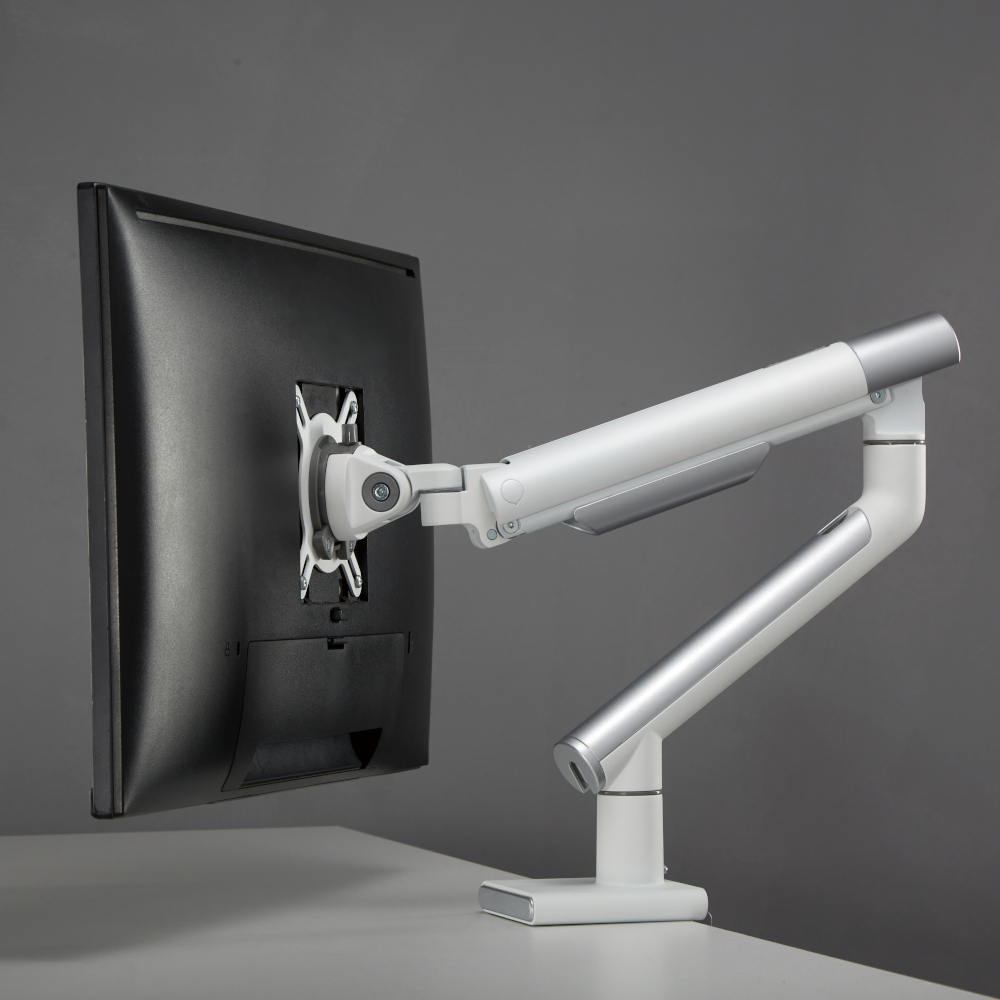 With slim modern designer arms and outstanding flexibility, the EMA49 Series single monitor arm combines great looks and smooth movement. Ideal for applications requiring frequent display adjustments, it is available in two modern colours to suit any office environment.