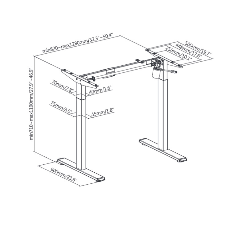 - Adjustable height Range, 710mm - 1190mm (excluding top)