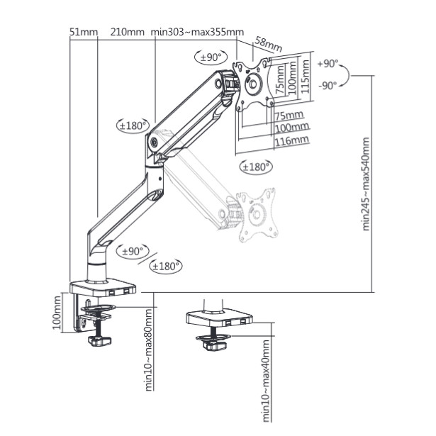 - Strong arm that confidently holds heavy monitors up to 16kg.