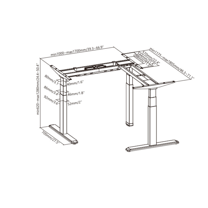 The all new stylish Ergo-V EDGE L shaped desk frame is great corner desk workplace solution. With a smooth triple motor and three stage leg system this stylish frame is extandable to suit a range of desk top sizes. Thanks to the digital LED memory controller, adjustments can be made with one touch and 3 programmable memory presets save your desired height, sit/stand time reminder for regular movement.