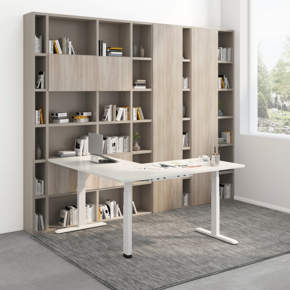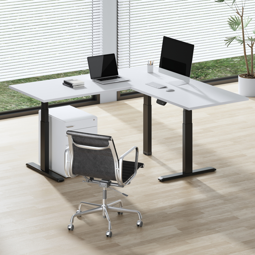 Upgrade your workspace with our Ergo-V TRIO L Shape Electric Sit Stand Desk, designed for ergonomic comfort and sit stand working productivity. Featuring 3Â motors and a 3 stage leg design for working at high or low positions, this desk has it all.