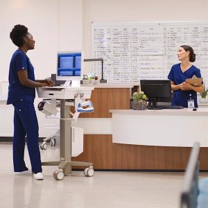 - Small footprint: Works as a point-of-care solution at a patient’s bedside, in a hallway