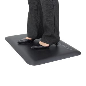- Standing on this anti-fatigue mat encourages slight movement of lower legs for healthy movement