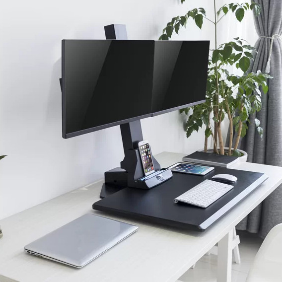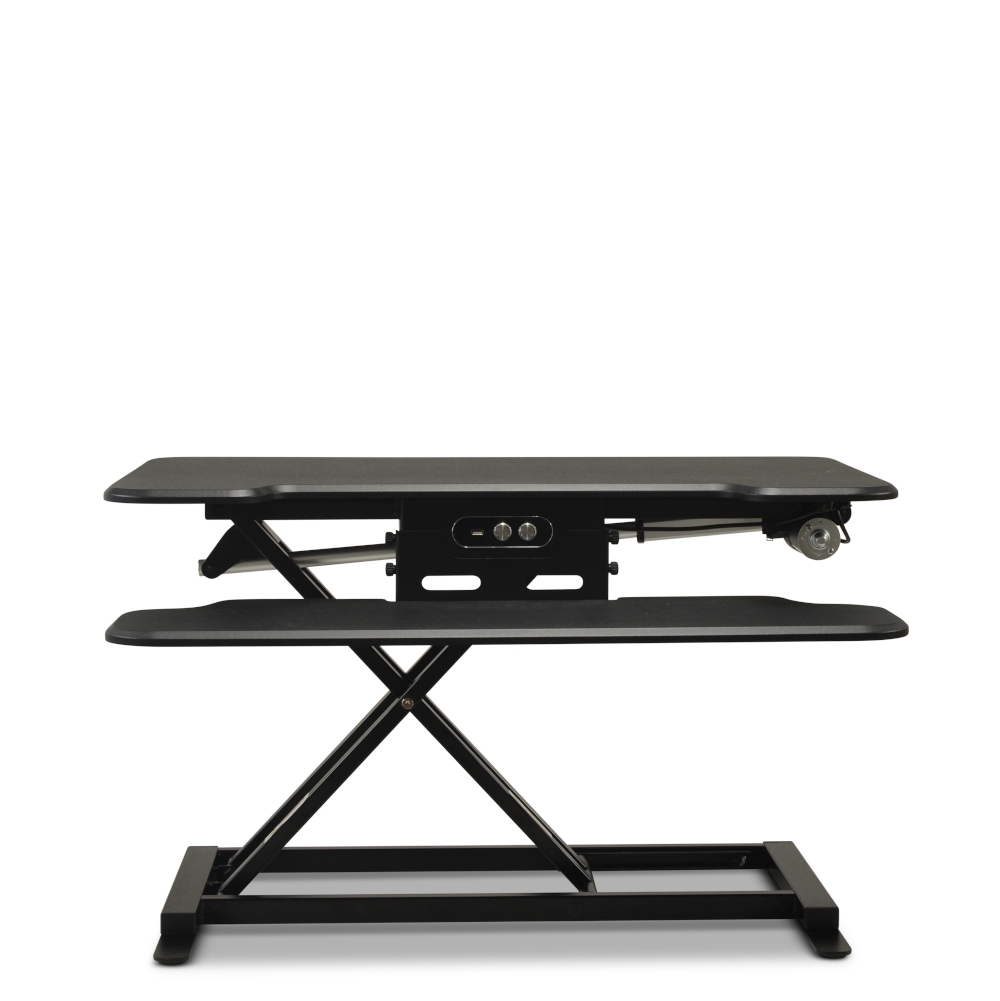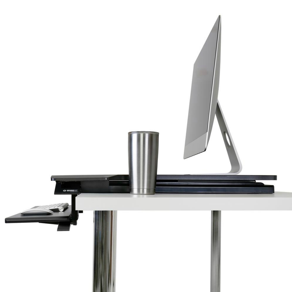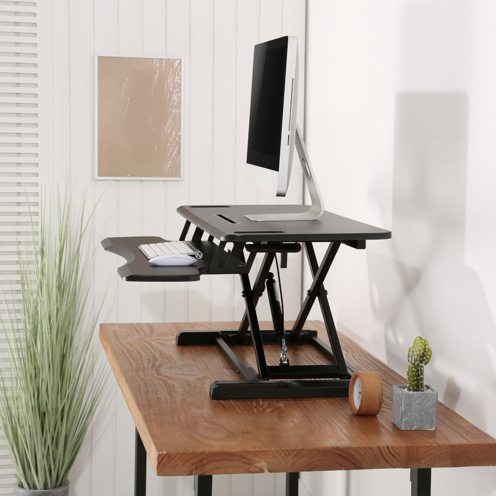The Ergoton TX sets a new standard in manually operated sit stand desk converters. Designed to fit most people, the WorkFit-TX has a X-shaped lift that folds closer to your desk. This keeps the right monitor-to-keyboard tray spacing closer than can be achieved on other products. The keyboard tray can be back tilted and sits below the worksurface.