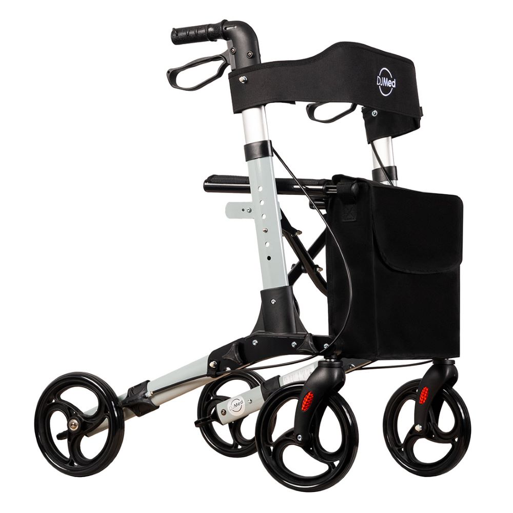 - 4 wheeled for stability on various types of terrains with this lightweight and adjustable walker. The front wheels swivel to allow you to roll over most outdoor terrain easily.