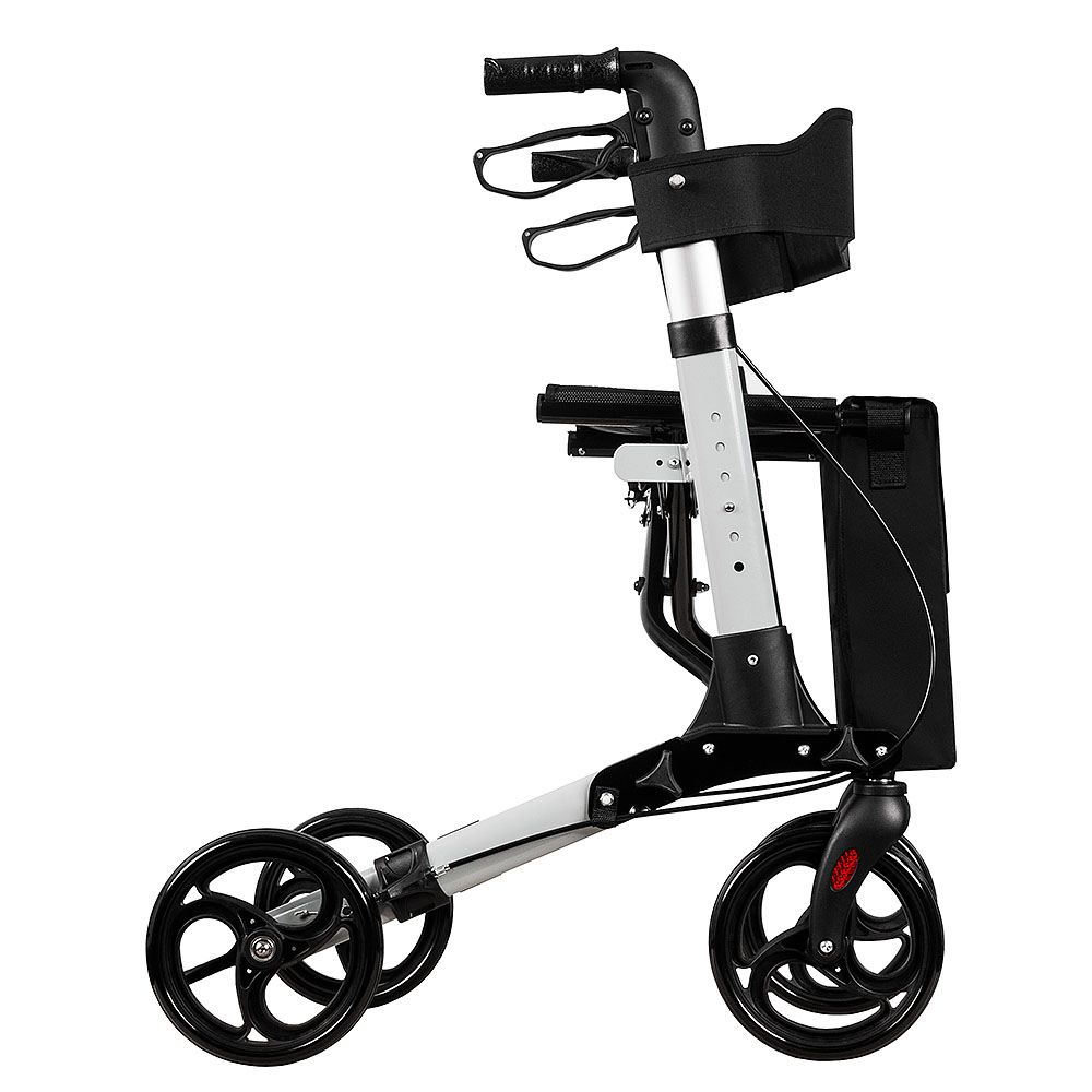 The Euro Walker Rollator is has a super lightweight aluminium frame, is easy to fold for car boot and storage and comes with bag and flex seat. The cross-brace provides added stability for those really tough terrains, and the push button handle height adjustment makes navigating indoors and outdoors easier than ever before.