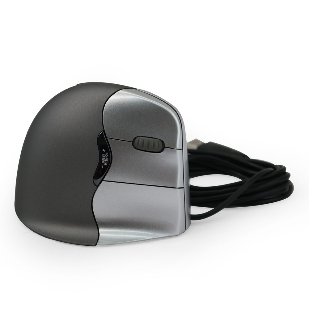 The Evoluentâ„¢ Vertical Mouseâ„¢ has a patented new design and shape that helps support your hand in a relaxed handshake position, and eliminates the arm twisting required by ordinary mice. In technical terms it eliminates the wrist posture of dorsiflexion with forearm pronation that occurs with a standard mouse.