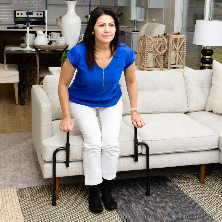 If you have trouble standing from your couch, chair, or recliner, then the EZ Stand & Go from market leader Stander in the USA can help you stand with confidence; without having to buy an expensive lift chair. Perfect if you are recovering from surgery, have back pain, general unsteadiness, or have a lower-set couch that is hard to stand from.