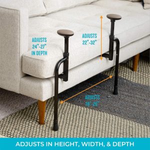 Fully adjustable, it can assist can be modified to fit a wide range of couches and chairs. To install, simply fit the stand assist frame either around an attached cushion, or underneath a removable cushion.