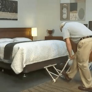 The brilliant Ezi-Maid bed lifting system allows you to make your bed, change your bed sheets and vacuum under your bed without having to bend down and hurt your back. It lifts the bed up 500mm and away from the wall using an electric lift system controlled by remote, so it does all the heavy lifting for you!