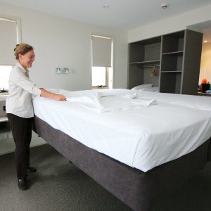 - Beds are not bolted to the headwall or have upright posters that may hit the ceiling when raised to 50cm.