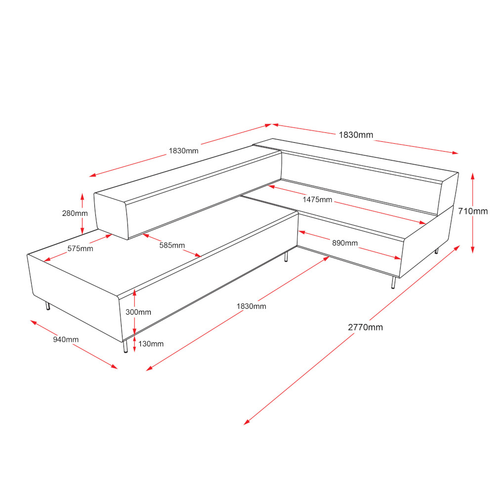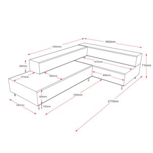 - Overall Size – 2770mm W x 1830mm D x 710mm H