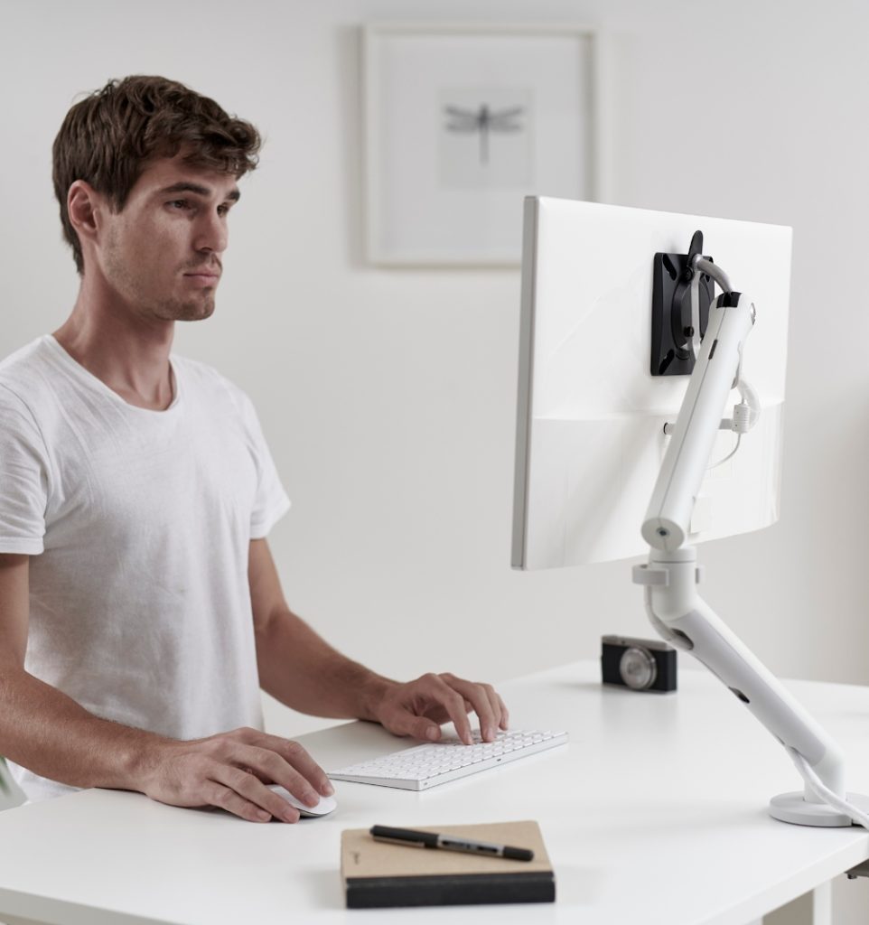 Find the perfect ergonomic position in seconds. No matter the size of your screen, Flo X’s dynamic, fingertip adjustment means you can perfectly position, tilt and also flip your screen from landscape to portrait and back effortlessly. That’s not just convenient, it helps you avoid the stresses and strains of awkward postures caused by poor positioning and repetitive scrolling.