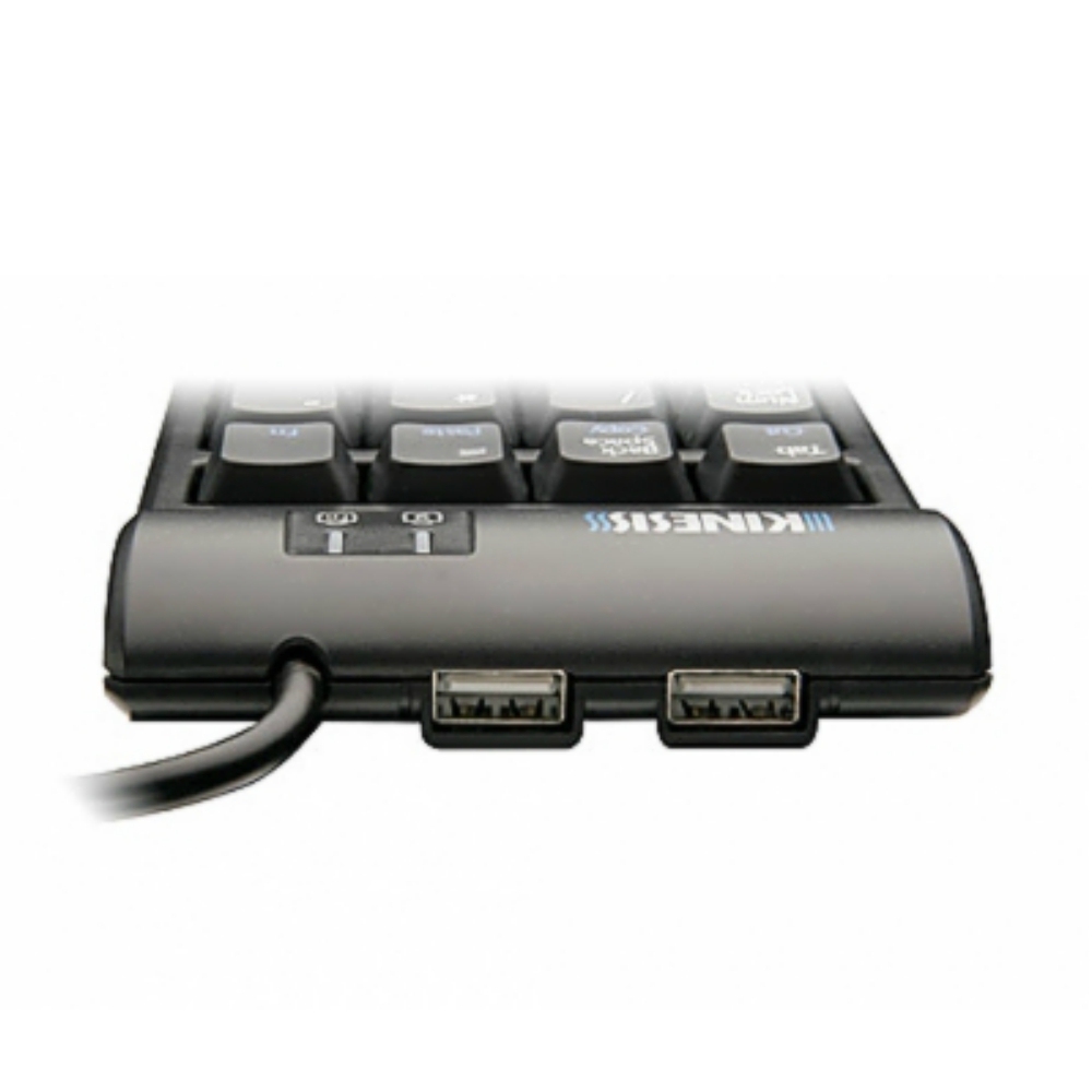 The Kinesis Freestyle 2 slimline numeric Keypad can be used with either a keyboard or laptop on the left or right side. It connects via USB and has a very handy inbuilt 2 port usb hub. Another simple ergonomic accessory option fron Bad Backs.