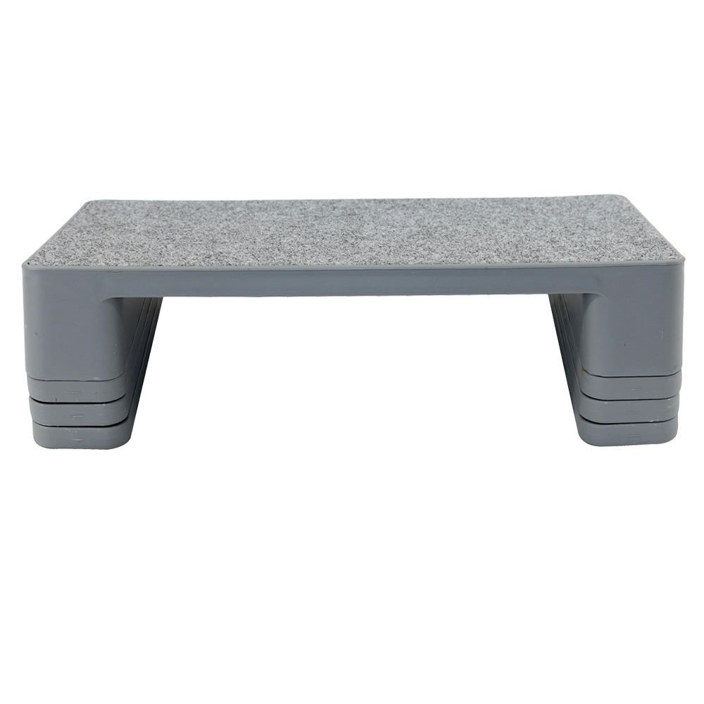 Height adjustment is carried out by varying the number of spacer blocks used at either side of the platform. Blocks not being used for adjustment attach to the centre of the platform underside for handy storage. This unique system of height adjustment has the following advantages: