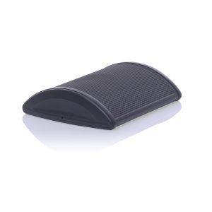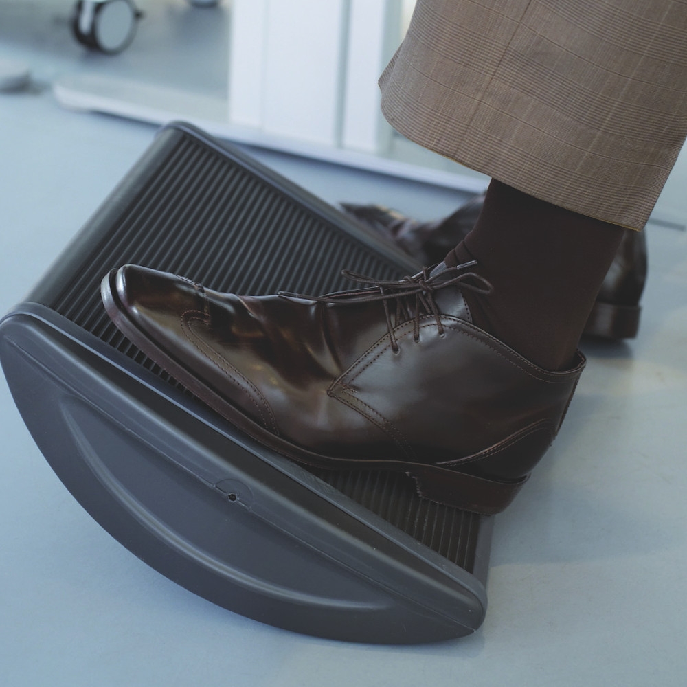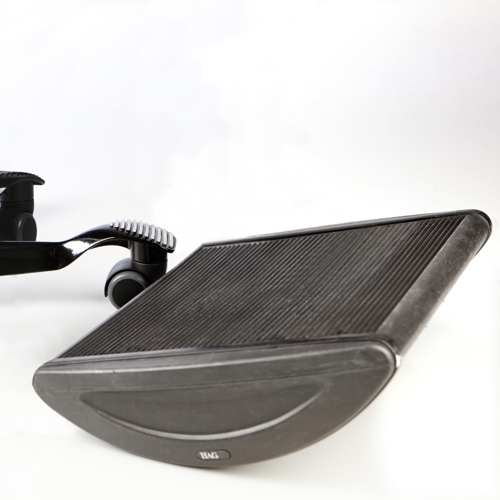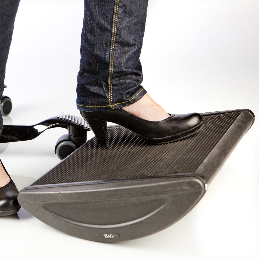 The brilliant HÅG Quickstep from Scandinavia is a simple footrest that helps provide extra height for your feet and its rocking movement helps stimulate circulation, allowing your leg muscles to stretch, while your feet soles are gently massaged. You can also use the footrest with a flat base with the curved hump shaped top acting as your foot support. It is not height adjustable. Comes in modern contemporary black design