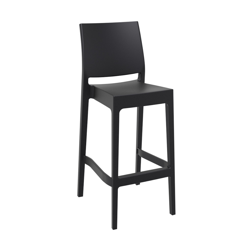 The Harbour barstool 760 is a fully welded pressed steel stool, galvanised for full weather resistance and powder coated black. Perfect for industrial style environments like brick, timber or concrete, it is ideal for both indoors and outdoor settings like beer gardens, courtyards and cafes. Fully stackable, simple and light to move around.