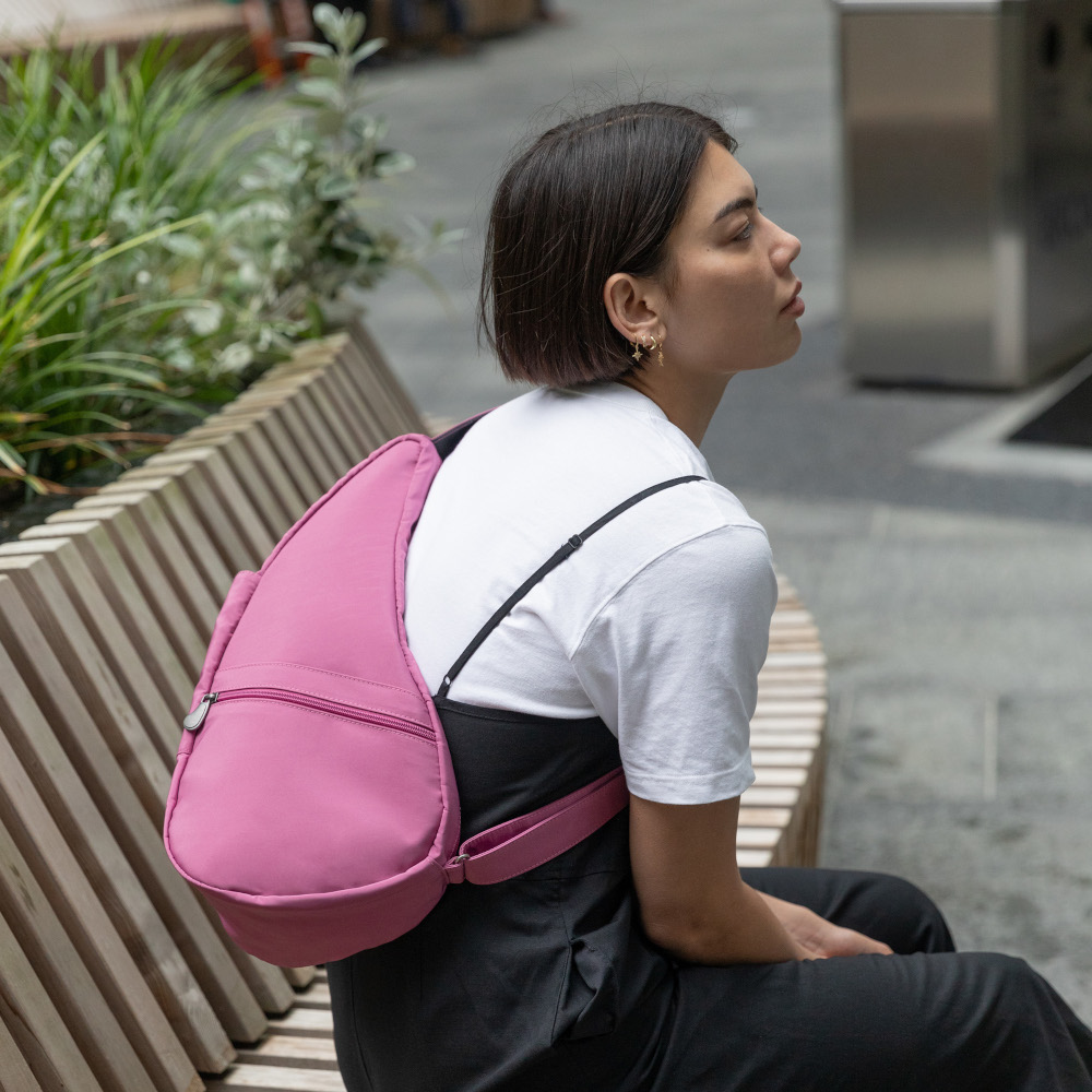 Non-slip strap, body-hugging contours, sizes to fit all and multiple ways of wearing make this the most comfortable bag you'll ever own. - Balanced: