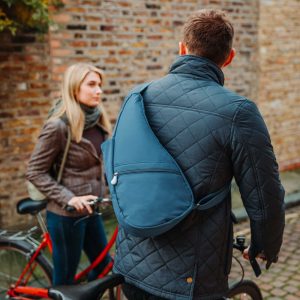 Every Healthy Back Bag has clever pockets! Intelligently designed inside and out, means your stuff is organised, and weight is distributed around the bag and frustrated rummaging and digging is a thing of the past. Exterior pockets are perfect for a travel card, loose change, a slim book and umbrella. Inside there is room for a Kindle or a netbook; a magazine, water bottle, keys, purse, gloves, pens. All conveniently distributed around the bag. - Secure: