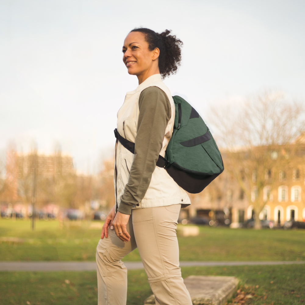 Every Healthy Back Bag has clever pockets! Intelligently designed inside and out, means your stuff is organised, and weight is distributed around the bag and frustrated rummaging and digging is a thing of the past. Exterior pockets are perfect for a travel card, loose change, a slim book and umbrella. Inside there is room for a Kindle or a netbook; a magazine, water bottle, keys, purse, gloves, pens. All conveniently distributed around the bag. - Secure: